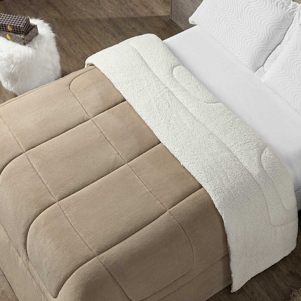 Duas opções de textura em um único produto: use o lado em manta soft para uma sensação suave ou o lado em sherpa para um calor ainda mais aconchegante.